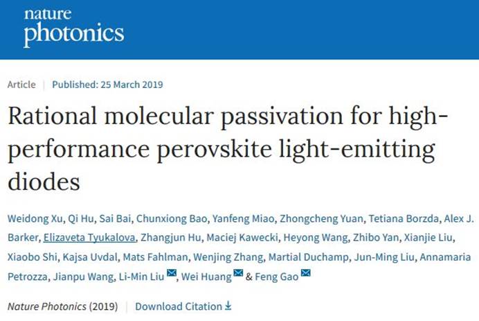 近日,先进材料研究院黄维院士团队与瑞典林雪平大学高峰博士、北京计算机科学研究中心刘利民博士进行合作,在钙钛矿发光二极管(led)领域取得重大突破。