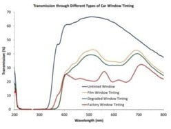 不同汽车玻璃在uv-vis-nir及nir波段的透过率