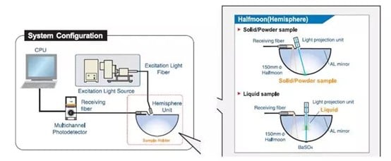 quantum yield measurement system by hemi sphere system, and evaluation by standard sample