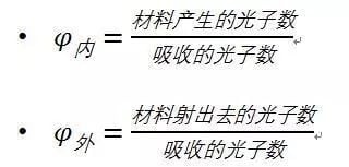 荧光量子效率又称荧光量子产额(quantum yield of fluorescence)或荧光效率。一般情况下,荧光量子效率、荧光量子产额与荧光效率描述等价。他们均指单位时间(秒)内,发射二次辐射荧光的光子数与吸收激发光初级辐射光子数的比值,用来描述荧光材料发光能力,可以使用下列公式表达: