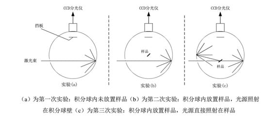 测试搭建好后,按照下列步骤进行操作。(有时也可以将样品放置在球壁开口处,测量步骤与放在球中心相同)