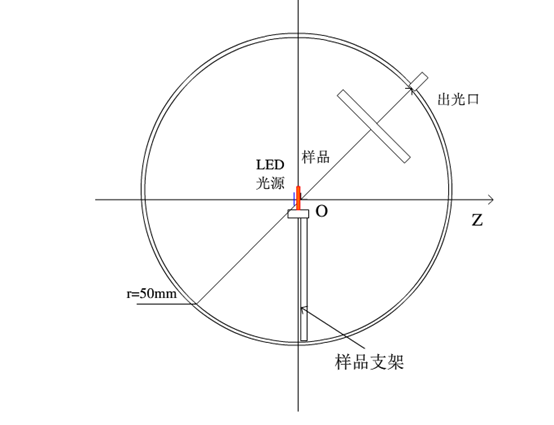 国外通用的直接光学测量法是对激发前后光谱进行直接测量的方法,可以采用分布光度计或带积分球的光谱仪测量。分布光度计需要大的暗室、高精度位移控设备,价格昂贵,全空间测量耗时太长[4], 而基于积分球和光谱仪的直接光学测量系统测试原理简单,设备简易,测试方便、快捷,下面我们就以积分球测量的方法做一个简单介绍。