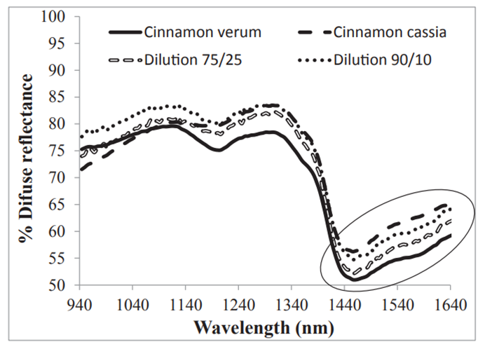 检索文献后发现,确实能基于光谱学来鉴定肉桂。来自阿根廷的学者miguel等人发现可以使用近红外光谱结合化学计量学这种低成本的非破坏性方法鉴定肉桂掺假。