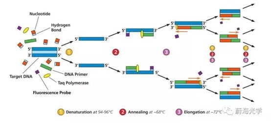 pcr是一种高度特异、准确和快速的dna扩增技术,通常被称为dna“复制”。pcr在1985年被cetus公司的kary mullis发明,这项发明也被授予1993年诺贝尔化学奖。pcr的出现对发展基因组测序领域至关重要。pcr过程中的每个热循环通过3个步骤将dna的量加倍:靶dna链变性,引物分子退火至变性dna,并通过聚合酶反应延长靶链。通过多次重复,该过程实现了靶dna序列的指数扩张。