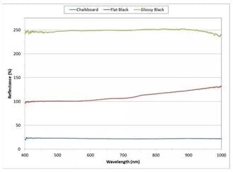 大多数黑色涂料不完全是黑色的,因此通过反射测量来描述表面的反射特性。测量目的是鉴别涂料在波长范围内的将反射降到最低程度。