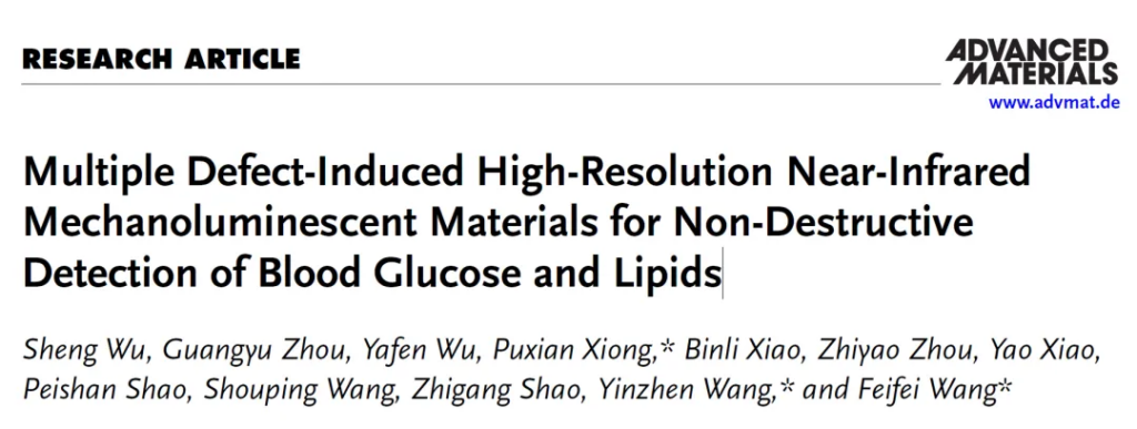 - sheng wu, et al. multiple defect-induced high-resolution near-infrared mechanoluminescent materials for non-destructive detection of blood glucose and lipids, adv. mater. 2024, 2408508.