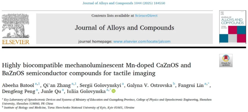 - abeeha batool, et al. highly biocompatible mechanoluminescent mn-doped caznos and baznos semiconductor compounds for tactile imaging, journal of alloys and compounds 1044 (2025) 184550.