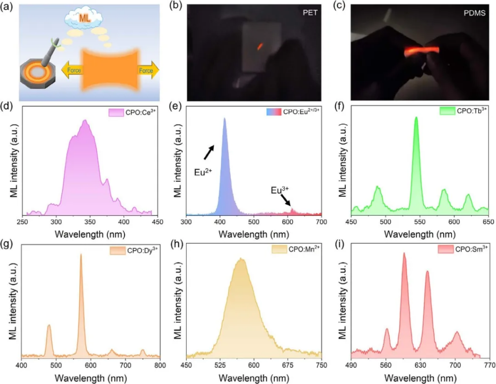 该研究制备了基于焦磷酸钙(ca₂p₂o₇,cpo)的新型多色自恢复ml材料,通过掺杂不同发光离子x ( x = ce3 , eu2 /3 , tb3 , dy3 , mn2 , sm3 ),实现了从紫外到橙红光的多色发光。与传统的陷阱型ml材料不同,cpo:x无需紫外预照射,即可表现出显著的自恢复发光特性,并具有优异的生物相容性和低毒性。基于这一优势,研究团队开发了击剑记分装置、可穿戴柔性皮肤和牙齿保护层等应用模型,为ml材料的实际应用提供了新方向。实验采用了海洋光学 qepro光谱仪完成了对该材料ml性能的评估。