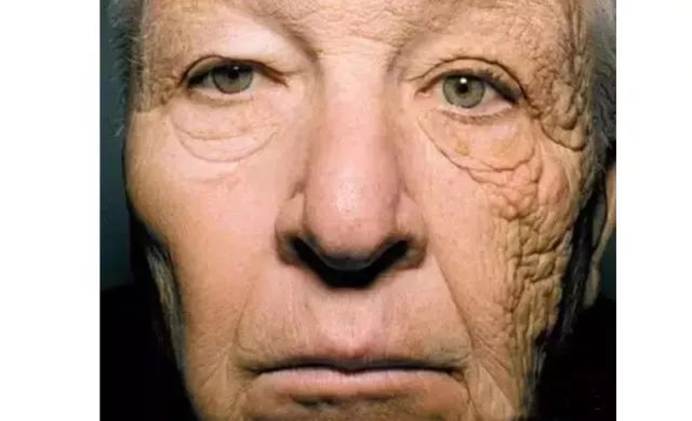 这张照片来自英国一家医学刊物登出关于光老化危害的科普文章,图片里的老人因为工作,左脸常年受到紫外线照射变得明显老化于右脸,非常直观的展现紫外线对肌肤老化的伤害。