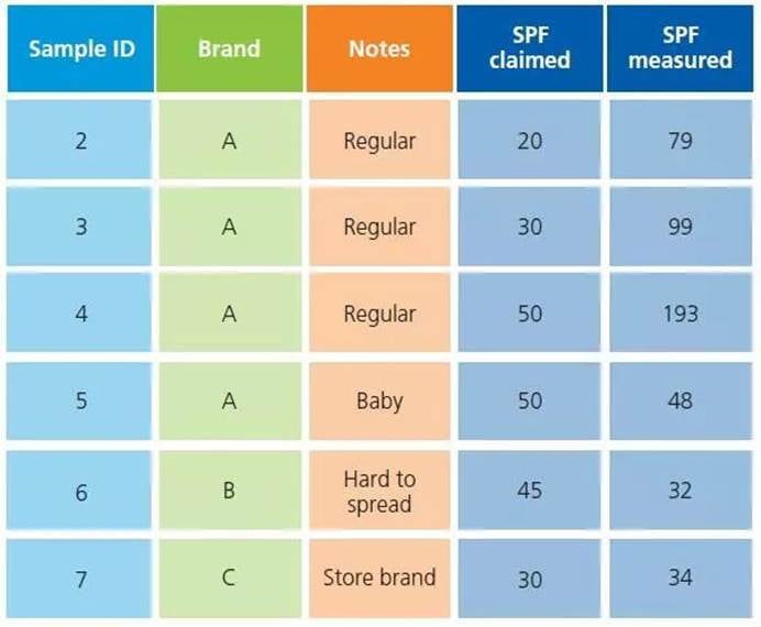 通过测量计算,防晒霜的防晒功能是非常有效的,品牌a的防晒指数是承诺指数的3-4倍,其余基本保持在品牌承诺的范围内。那么防晒指数越高就越好吗?答案当然不是!