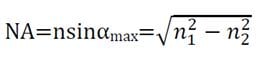 其中n为光在空气中的折射率,αmax为收光角的半角,n1为纤芯的折射率,n2为包层的折射率。
